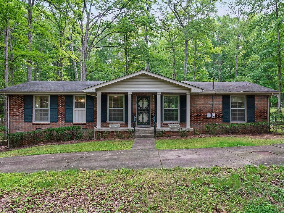 Wonderful one owner home on gorgeous 2 acre lot.Only 5 minutes to I24 and access to downtown. Circular drive and large covered front porch welcome you and your guests.Traditional ranch plan,so easy to open up and create your dream home. Hardwoods in living ,hallway and bedrooms. Sunny Kitchen with open dining area featuring a built-in buffet.Primary suite with half Bath. Spacious Den with stone fireplace. Back patio with access to level backyard,gazebo,and separate workshop.Home is being sold to settle estate,has lots of potential!.
