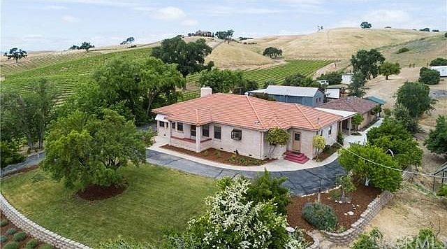 Authentic Mid Century Farmhouse! This unique property was built by an original Paso Robles pioneer farming family in the late 1940's and rests upon 10 useable acres in the heart of wine country, with vines on both sides. The views from the home are incredible and are just one of the things that make this place truly special. The home is 3bd/1.75ba and has original hardwood floors that are in pristine condition. Built out of locally made bricks from Creston, and equipped with a large basement that would make a fantastic wine cellar, this property is one of a kind. The kitchen boasts a Viking Range, a "California Cooler" and includes all of the appliances. There's a large mudroom that leads out to the covered breezeway that is connected to the detached 3 car garage. Additionally, there is a shop with 220, wood shed, garden shed that used to be a walk-in for a local Paso Robles store and a 20ft C-train. This property has been a walnut orchard and home to a small group of vines and also has a Navel Orange tree. Additionally, there is an owned solar system that is included with the property. If you've been looking for a special property, look no further than 7350 Creston Rd.