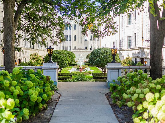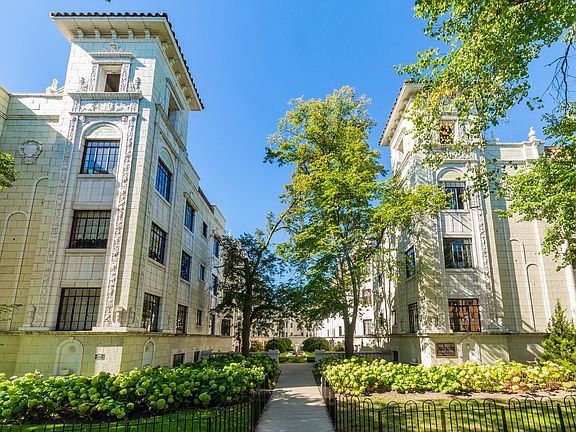 Incredibly RARE opportunity to own in one of the most iconic buildings in Chicago: the Casa Bonita. Drenched in natural light, this 3 bed, 2 bath jumbo end unit features exceptional style and craftsmanship in each of its expansive rooms. No details spared! As you enter, you're welcomed by a beautiful foyer presenting elegant tile and floor-to-ceiling pillars. This opens to a great room-styled living space with a decorative stone fireplace, hardwood floors, and three double-paned windows that flood the room with light. The large separate dining room flows perfectly with the adjacent kitchen, making hosting a breeze. Kitchen includes brand new stainless steel appliances (2 year warranty included!), brand new tile flooring and backsplash, tons of counter and cabinet space, and an island with plenty of seating. Both full bathrooms were recently renovated from top to bottom. The Casa Bonita includes a HUGE indoor heated swimming pool, spacious outdoor patio space, wet and dry sauna, game room with pool and ping-pong tables, party room, exercise room, children's play room, hobby/wood-working room, indoor bike storage, and two laundry rooms. The building exhibits pristine gardens and all the charm one could ask for. Sizable private storage room in the basement included with this unit. This is the one - schedule a showing today!