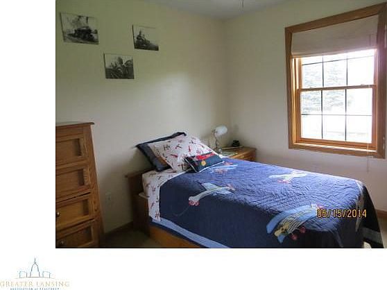 Enjoy 7.66 acres with a pole barn, pond, stocked with fish and yes you can swim in it also, with beautiful apple trees in back. The deer love this place. The ranch has a walkout to the patio.