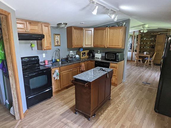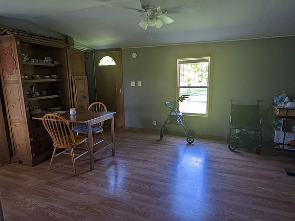 Affordable living! 1988 single wide mobile home with 14x40 add on completes this 3 bedroom 2 bath home, with Pella windows and doors, drywall, and laminate floors. Situated on 5 acres with 24x24 farm building with electric.