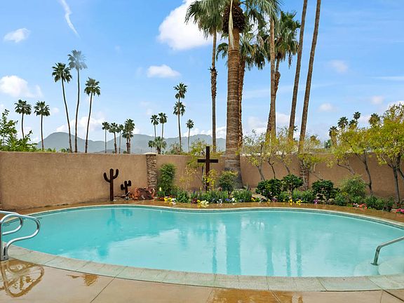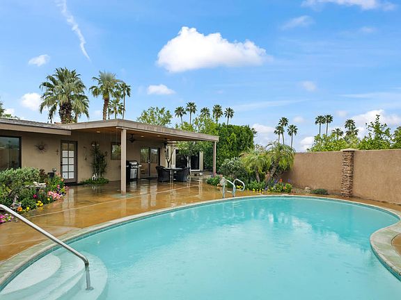 Welcome Home to the Highly Coveted, Silver Spur Ranch neighborhood. Nestled on the hills in South Palm Desert with privacy walls surrounding all but the entrance sits a Classic mid-century ranch home, built in 1961 on an oversized lot. This home has been renovated using the highest quality finishes! The Quartz countertops and backsplash highlight the new kitchen. Beautiful new flooring with ornamental thick molding throughout! Large built-in TV Media. Two en-suite bedrooms and a possible 3rd bedroom currently serves as a large, custom built, walk-in closet. This home is also equipped with a Halo water filtration unit (owned). The Private patio and Pool area have the most breath-taking panoramic mountain views you've ever seen! The 2 car attached garage is pristine with storage cabinets and a tan epoxy floor. The detached garage is 400 square feet of finished space with a full bathroom, heat/AC and epoxy floor. Easily convertible to a Casita, Studio or Office. Maintenance free desert landscaping! LOCATION! LOCATION! LOCATION! Close to the Exquisite shops of El Paseo, The Living Desert, Ironwood Park, Golf Courses, Hiking trails and so much more!!Seller has measured house, Buyer to perform their own due diligence.
