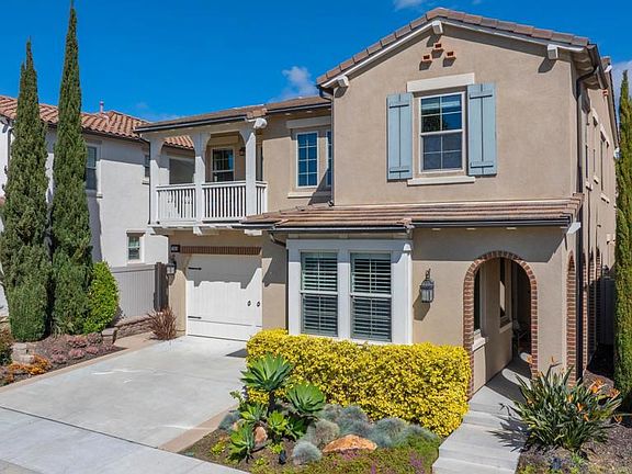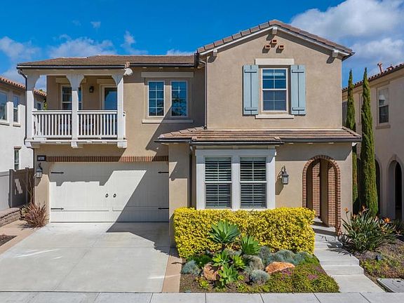 GORGEOUS energy efficient, Taylor Morrison home in the Montecina neighborhood of only 33 homes. This beautifully appointed 4 bedroom, 3 bath (1 bed and 1 full bath down) PLUS loft home has it all! Open, airy, great room with an abundance of windows, gas fireplace and access to the backyard which features an al fresco dining area, spa, built-in firepit, turf and mature trees for privacy. Chef's kitchen complete with large prep island with seating, stainless steel appliances, granite countertops and walk-in pantry. Upstairs you will find the oversized primary bedroom and bath with soaking tub and walk-in closet. You will also find 2 secondary bedrooms, one with a view deck and walk-in closet, another full bath and laundry room with cabinets and sink. Additional features include a tankless water heater, split zone AC/Heater, sprinklers in front and back and an attached 2 car garage. There is a community garden, park with BBQ and guest parking. Quiet and peaceful, yet walkable to highly rated schools/ENCINITAS AND SAN DIEGUITO SCHOOL DISTRICT, La Costa Town Square and just a short drive to the beach! Low HOA, NO MELLO ROOS. This is California living at it's best!