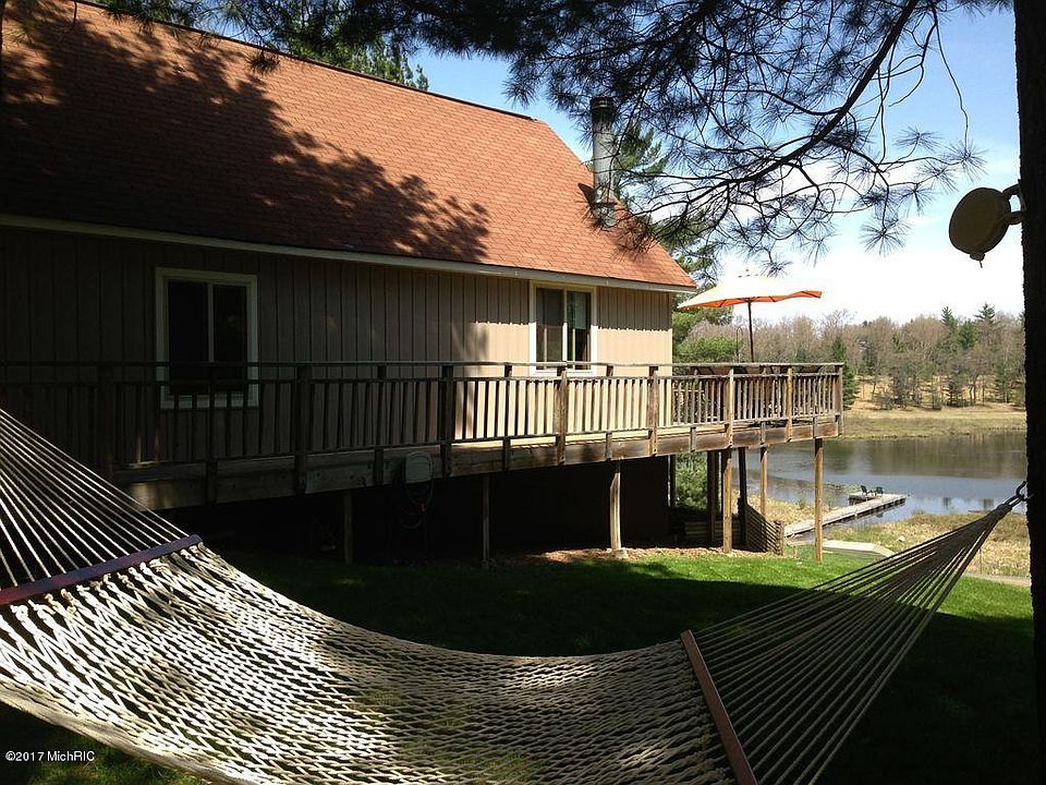 PEACEFUL CASIN LAKE RETREAT-2 bedroom/1 bath Chalet Cottage with 160 ft on private Casin Lake. Enjoy your quiet get-a-way with this easy to maintain cottage. Boasts central air, bedroom on main level & loft bedroom, open floor plan with knotty pine interior & wood stove. Underground sprinkler, Large 20x10 Deck overlooking Casin Lake & wonderful wildlife. Large 24x30 polebarn with power for equipment & storage. Enjoy the outdoor fire pit with family & friends. In the heart of Manistee Natl Forest , offers 1000's of acres of public land for hunting, ATV & snowmobiling & the great Pere Marquette River minutes away. Casin Lake is a shallow 48 acres lake ideal for duck or goose hunting & fishing. Ludington & Lake Michigan beaches only 25 miles away. Call for your private showing - it's a gem!