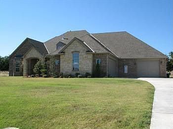 Cedar Lake Estates located on Broadway just North of Waterloo in Edmond School District. Approx. 2 acres in gated neighborhood with 5 acres park with fishing ponds. Bank Owned property built 2007 with Seller offering Castlekeep One Year Warranty. Lovely home with approx. 3460 Sq.Ft., 3 bedrooms plus study and upstairs game room, 3 full baths, 1 half bath, open family room, 2 dining, and 4 car garage (2 side load and 2 car tandem pull through – great for boat). Tiled entry leads to formal dining with built-in hutch and chair railing. Living room with ceiling fan, stone fireplace, and open to kitchen area. Kitchen supplied with tile flooring, stainless steel appliances, dishwasher, microwave, double ovens, gas cook top, tile back splash, granite counter tops, built-in pantry, breakfast bar, and breakfast area. French doors open to study with painted woodwork, wood beamed ceiling, and carpet flooring. All bedrooms on lower level with master bedroom accented with built-in entertainment cabinet, access to patio, and private bathroom suite. Master bathroom provided with tile floors, combination woodwork, built-in medicine cabinet, walk-in closet with built-in ironing board, dressing mirror, access to laundry room, double vanities, granite counter tops, whirlpool tub, and oversized double shower. Utility room has tile flooring and extra counter space. Other features include: brick exterior with stone accents, sprinkler & security system, garage door opener, septic system, Logan County rural water district, crown molding, extensive baseboards, woodcased windows, arched doorways, walk-in closet under staircase, powder bath with custom woodwork and granite, large covered back patio with 2 ceiling fans, and upstairs game room with 2 ceiling fans, wetbar with sink, wine rack, cabinets, and full bath. Homeowners association dues are approx. $600 per year and estimated taxes are $3,837 per year. For more information contact: Brad Reeser with Keller Williams Realty (405)