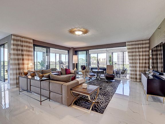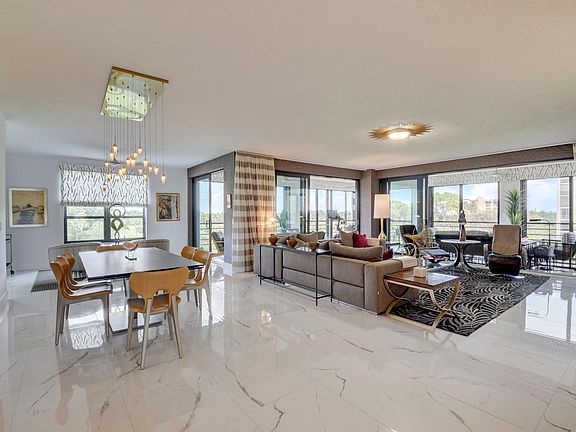Spectacular 3/2.5 fully renovated condo on 4th floor in upscale building of Boca Pointe! Walk right in and be swept away by the golf and lake views from the wrap around terrace. Includes 2 parking spaces and 2 storage units (typical condo only has 1 of each). Floor plan features foyer, split bedrooms, 2 custom fitted closets in master, walk in storage closet, double sinks plus separate tub and shower in master bath, large kitchen with breakfast area plus home office or sitting area, living room and formal dining room, and separate laundry room. Impact glass on all windows and interior sliders. Renovated in the past 2 years. Porcelain floors throughout condo. Imperial Royale building has locked entrance, lobby, clubroom, renovated pool and patio, manager on site