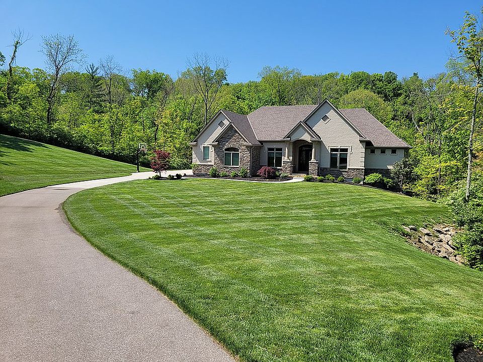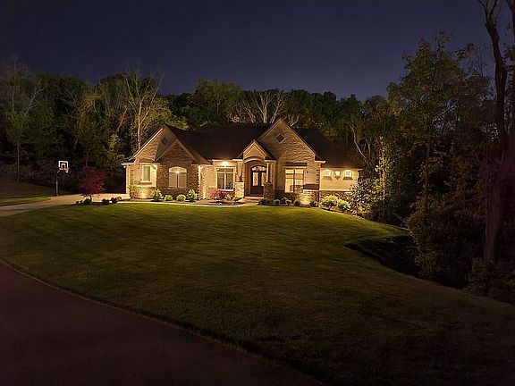 Private 300-foot driveway off of a private street tucked in 1.7 acres of woods. Open floor plan with first-level master bed/bath, large walk-in shower with four shower heads, and freestanding tub. Large first-level office with fireplace and conference area. Brick and wood 400 square foot roofed deck overlooking the woods and creek and green space, where no other structures are visible. Lower level living and entertainment area with bar, pool table, and finished workout room and cinema. Hallway separating two bedrooms and a walkout patio with stone firepit and wooded view.