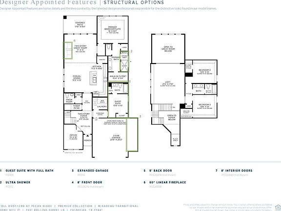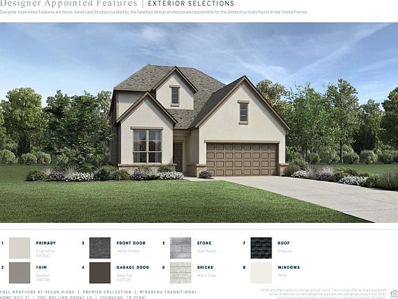 The curb appeal of the Mirabeau Transitional is clean and modern, with upgraded stone accents. This show-stopping home boasts high ceilings for an open and airy feel. Just off the foyer is a spacious home office to manage family schedules or remote working. The bright kitchen features a center island, stainless steel appliances, and a sizable pantry. The casual dining space opens to the expanded great room and provides easy flow while entertaining. Overnight guests will enjoy the secluded guest suite with a full bath and closet on the main floor. A luxurious primary bedroom suite is enhanced with a tray ceiling and resort-style bath with an ultra shower with drying area and seat, a dual-sink vanity, linen closet, and walk-in closet. Upstairs, you will find a huge open loft with views into the foyer and great room, and two secondary bedrooms with large closets and a shared hall bath. Disclaimer: Photos are images only and should not be relied upon to confirm applicable features.