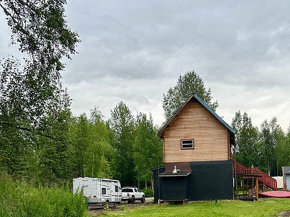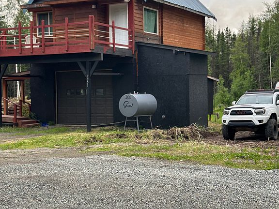 Cabin style home with oversized garage on a .5 acre lot. 780 sq ft home. Open loft bedroom upstairs. Cabin has rustic feel with new dishwasher, new fridge and front deck for outdoor entertaining. Located 3 min from Parks HWY down Pittman Rd. Spacious garage will fit toys and/or large vehicle. Washer and dryer and additional half bath enclosed in garage area. Last house on the left at the end of the block. Garage is heated, 2 Toyo stoves in addition to wood stove. Some utilities will be included in the rent including electric, water and internet. Cabin has its own well and septic system. Tennant will be responsible for garbage service. Maximum occupancy 2. Snow machining trails at the end of the block, fishing, kayaking, also within minutes. Dogs allowed with additional $150 deposit and a monthly increase of $50 (per animal) in the rent. Rent $1800 and utilities included. Will allow 6 mo lease with no additional fee to convert to 12 mo upon approval plus $1800 security deposit. Cabin is available for viewing and applications accepted on Zillow. Must have verifiable income and previous rental references. No smoking allowed inside. Covered parking, garage parking. Small children not recommended due to fall risk in loft. Renter will be responsible for heating fuel and required to maintain an account with Crowley Fuel for service, will cause damage to Toyo stove if fuel runs out. 2 person occupancy