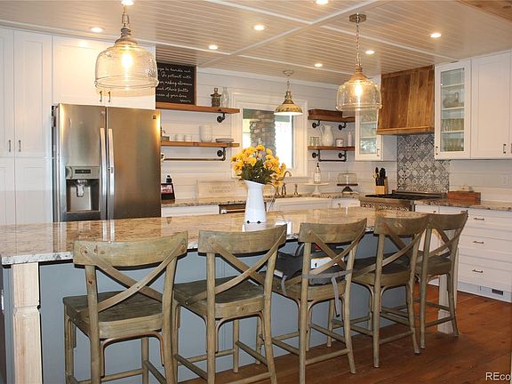 Beautifully remodeled modern farmhouse walk out ranch in The Pinery. The main floor features ship lap in the dining room and kitchen, new windows throughout and fresh paint. This open concept floorplan has an updated kitchen, 10 foot slab granite island with ample counter height seating, oversized farmhouse sink, dual fuel range/cook-top and plenty of cabinet space. Complete with soft close doors and drawers. Just off the kitchen is a dream pantry/mudroom/main floor laundry. You will never find yourself at a loss for cabinet space. The pantry has tall cabinets and feature pullout drawers to allow for plenty of storage and easy access. There is abundant storage for shoes, coats and backpacks in the mudroom. Wash your muddy boots or clean off tools in the huge galvanized wash basin sitting in-between the washer/dryer. The hallway leads you to two bedrooms and fully tiled bathroom. There is a large master with private deck and recently updated master bathroom. In here you will find a double vanity, porcelain waterfall tile and a frame less glass shower with a rain shower head. The walkout lower level boasts a large entertainment area/rec room and a good sized guest room with updated bathroom. The walk out level allows for a private access for a mother-in law unit, if desired. This spacious ranch home sits on almost a half an acre with mountain views. You will enjoy entertaining on multiple areas, with 2 covered decks and extra large concrete patio. Large oversize garage. An abundance of mature landscaping sets the mood for your perfect home. Set your showing today, you do not want to miss out on the opportunity to own this rare ranch in this highly sought out neighborhood Agent related to seller.