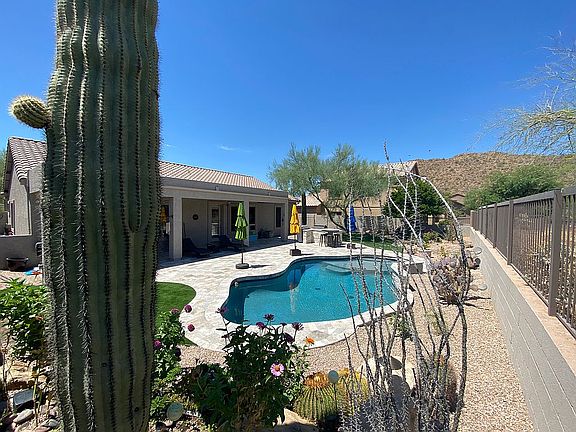 Blandford built home. Located in the luxurious and upscale Master Planned Gated community of Las Sendas Golf Club. Features miles of hiking and mountain biking trails along Usery Mountain Regional Park, Robert Trent Jones Jr designed golf course, Trail Head Members Club with spa and workout facilities. Boulder Mountain gated enclave, spectacular mountain views, large desert backing, and mountain view are featured in this 3 bedroom, 2 bath, single level home. Newly remodeled backyard (2020) travertine paver decking and walkways. Fully remodeled saltwater pool with new fountain features, jewels all glass tile accents on steps and pool line, LED color light, Automation, StoneScapes mini pebble with glass beads and abalone, and green artificial turf area all highlighted by LED landscape lighting - Pool & Landscape AZ New tile paver walkway - side yards Brand new custom-built arch iron grand entry door - First Impression Ironworks Brand new exterior home paint job - Dunn Edwards Brand new AC/ Heating units Brand new interior flooring wood plank 9 x 47 porcelain tile & baseboards. Remodeled baths feature a large glass block snail shower in the master bath. The kitchen includes luxury stainless steel appliances - Dacor. Tonto National Forest and Four Peaks mountain reserve are near the Salt River and outdoor lakes such as Apache and Canyon Lake. The community sits along Usery Mountain Regional Park.