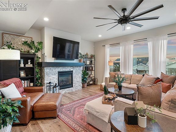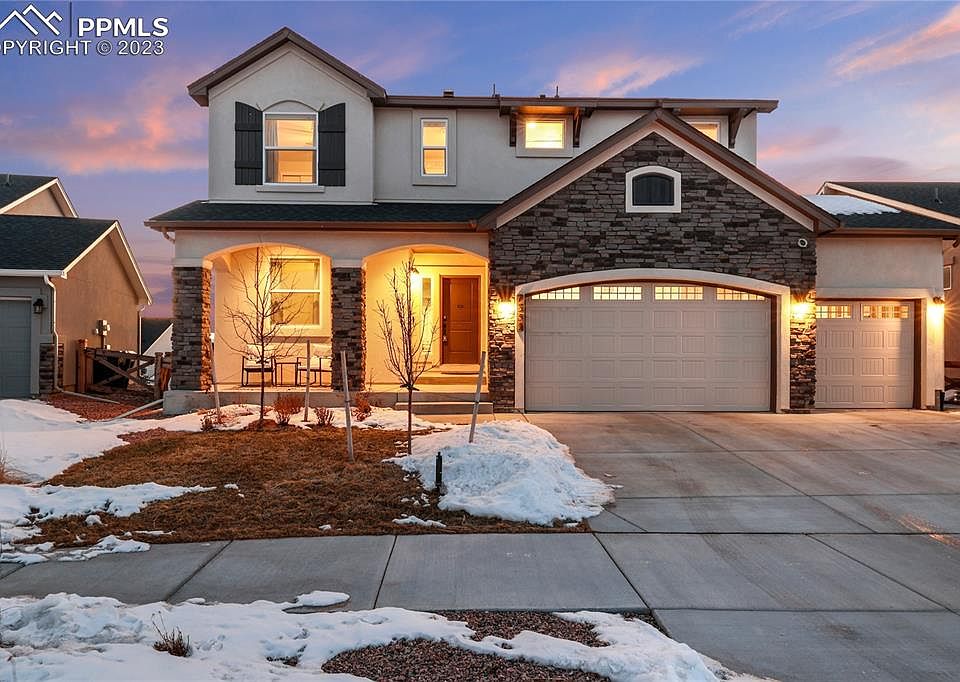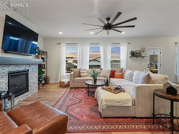 Prepare to feel right at home in the Highly sought after Banning Lewis Ranch Neighborhood. This home is perfectly situated directly across from Cedar Edge Park, more commonly known as the Zip Line Park. You are also a couple minutes walk from Vista Park which houses the Water Park, Dog Park, Pickle Ball Courts, and the Banning Lewis Prep Academy and Inspiration View Elementary School. The park also hosts many concerts throughout the summer too! The neighborhood also has a club house with a Gym and Heated outdoor Pool as well as Tennis courts and a K-5 Charter School. Heading to your home you will find an attached 3 car garage with 220 volt already installed. Walking into the main level you are greeted with LVP throughout the majority of the main floor and an open concept. Off the entry is a 1/2 bath, Office, and Formal Dining Space. The Great room is where you will want to spend the majority of your time with the cozy fireplace and the view of Pikes Peak! The upgraded Kitchen is open to the Dining Nook and Living room and has stone countertops, Gas Cook top, Double Oven, a Pantry, and Large mud room that leads to the Garage. Off the back of the home you will find an oversized composite decks where you will want to spend your Summer evenings BBQing. Heading upstairs you will find 4 bedrooms and a cozy loft. The Master retreat faces the back of the home so you can take in those Pikes Peak Views during our beautiful Sunrises! The Master also adjoins to a nice bathroom with double vanity, spa Walk-In Shower and a large Walk in Closet! Laundry is conveniently located upstairs as well and you have another full bath too. The basement is currently unfinished so you have ample storage space as it sits or your creative minds can take over and you can create your dream Basement! Does include Central Air which is a must in our hot summers and also prewired for exterior security cameras!