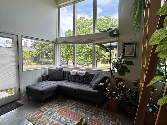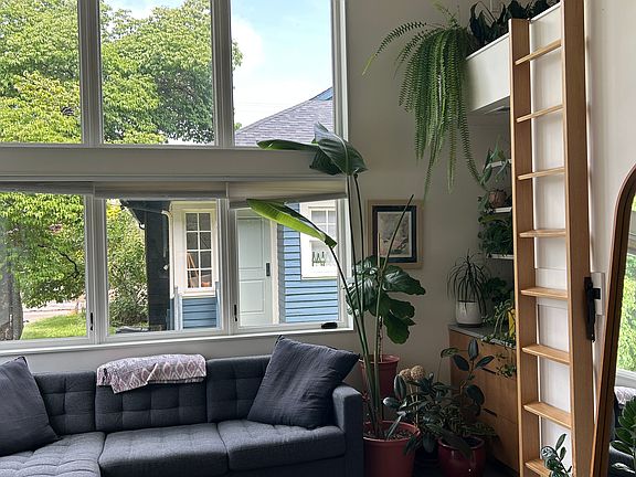 Beautiful modern architecturally designed 1 bdr/1 bath home for rent. This home is a gem with incredible light, tall ceilings and full length windows. The home is fully furnished and well appointed. Well insulated, quiet inside, and has air conditioning. Easy access to beautiful parks and grocery stores. All utilities except electric are included (wifi, water, garbage, landscaping). Lots of additional storage in loft space. Renter pays for electricity. Owner pays for all other utilities (WIFI, water, sewer, garbage, landscaping). The house is available July (minimum 6 month lease) and is rented fully furnished. Street parking is available. No smoking.