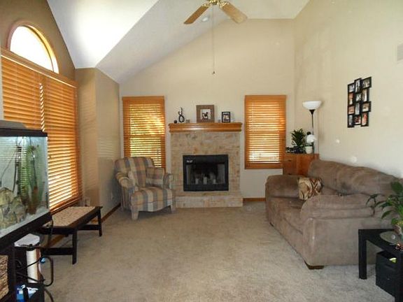 Nothing to do but move right in! Hardwood floors in kitchen and entry. Spacious kitchen with built-in desk and ample amount of cabinets and counter space. Vaulted ceiling in great room with stone gas fireplace. Master bedroom has trayed ceiling and walk-in closet. Bedroom 2 has built-in desk and shelving unit. Large family room with daylight windows. Finished bonus room in subbasement perfect for an office or playroom. Large patio and private backyard, including storage shed. Google Fiber friendly neighborhood.