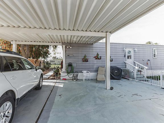 Location! Location! Location! Do not miss out on this lovely home with the best view of the #1 tee box. Home has plenty of storage or work space sheds. With a fenced in yard and doggy door ready for your pets, you could peacefully enjoy the covered patio on the golf course. Right next to the pro shop and walking distance to the club house, you will definitely enjoy all the amenities at Tri palms Estates and the low HOA fees. This 55 or better community offers 2 golf courses, 2 large pools, tennis courts, live music at the club house, and much more! Come see for yourself!