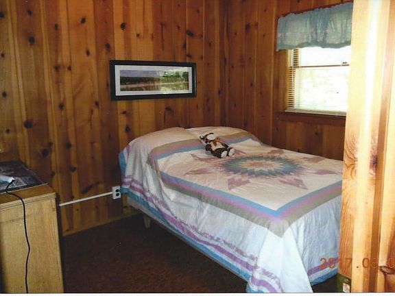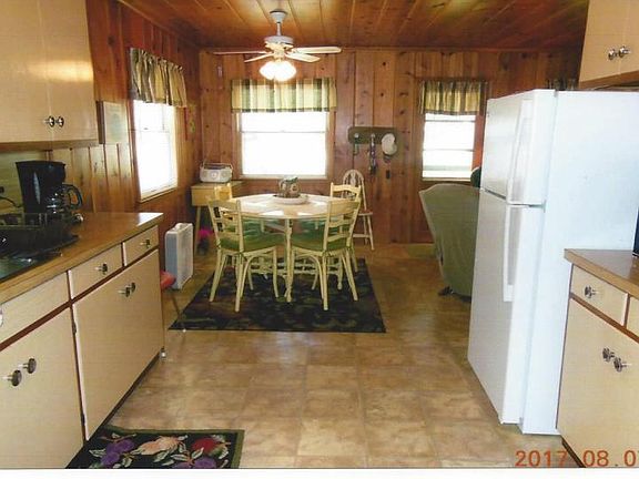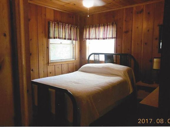 Clean, cozy & comfortable describe this 2-bedroom, 1 bath home with detached 2-car garage. Woodburning fireplace for cool evenings. Home sits nicely off road with backyard perfect for summer bonfires. Sandy beach access short walk across street at end of Bay Drive. City water. Septic replaced recently. Great vacation or year around home. Furnishings negotiable. Call agent to view.