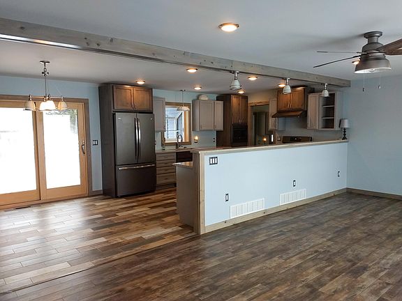 This partially remodeled lakefront 3 bedroom, 2 bath, ranch style home is waiting for its new family. She loves people and is hoping the right family will once again fill her empty walls with furnishings and the currently unoccupied air with conversation and laughter. She has had a recent makeover to include a newly opened floor plan. New floors in the remodeled areas, new quartz counter tops, Kraft Maid cabinets with soft close drawers, new appliances, a new electrical panel, new wiring in theremodeled area and new windows. Her exterior has all new siding, new entry door, new front and back Azek no maintenance decks, newly fenced large back yard with sprinkler system, and new landscaping.. All of that is topped off by a new gas fire place in the LR, full basement, 24'x32' pole barn, and 4 seasons room. Sellers motivated.