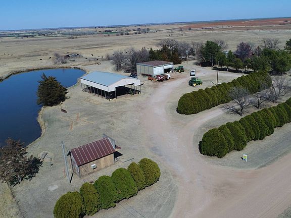 AUCTION 4/19/18 11:30 Tract 8: 19.5 Acres with home and barns Legal Description: Beginning at the Southeast corner of the Southwest Quarter of Section (35), Township (26) North, Range (9).W.I.M Alfalfa County, Oklahoma, thence west 10 2/3 rods, thence north 90 rods, thence east 10 2/3 rods, thence south 90 rods to the point of beginning, and beginning at the Southwest corner of the Southeast Quarter of Section (35), Township (26) North, Rang (9), W.I.M. thence north 90 rods, thence east 24 rods, thence south 90 rods, thence west 24 rods to the point of beginning containing 19.5 acres more or less. Directions: This tract joins the auction location on the east. Taxes: are combined with Tract 5 This tract has 19.5± acres that is improved with an older farm home that was built in 1903 and remodeled in 1975. The home has 3 bedrooms, 2 baths, large open living/dining area with wood fireplace. According to the county assessor there is 2,977 sq. ft. of living area with central heat/air, brick veneer, composition shingle roof. The farm stead is also improved with 40'x40' metal shop building with 2 overhead doors, 40'x60' open hay shed, 30'x60' Quonset barn, older barn and 2- grain bins with cone bottom. There are two ponds, older set of corrals, small cattle shed and grass pasture.