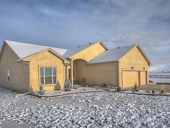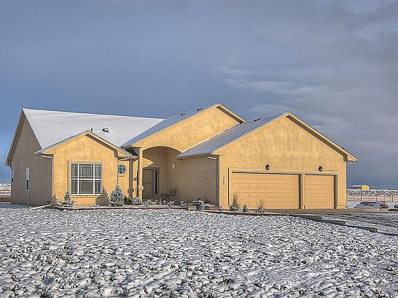 Immaculate Ranch Home on 2.78 acres. Take time to enjoy the Mountain Views from the covered porch. The property is pristine, no prickly cactus, fully fenced lot and no weeds. Front driveway has fresh new gravel base. Home is tucked right off the paved road of the cul de sac. Fully paved roads to the property. Walk in and you will be very impressed on the immaculate condition of the home. Great Room has vaulted ceiling with nice interior paint, carpet looks and feels new, walls are clean, windows sparkle. Open floor plan makes this home very inviting and cozy. The kitchen offers granite slab counter tops, lots of cabinets, nice size island, stainless steel appliances with gas stove, added features are A/C, Humidifier, water filter, storm door and so much more! Great size Master suite with private bath, walk in closet, two separate vanities and walk in shower. Easy commute to Fort Carson, I25, Pueblo, Fountain and Colorado Springs! Zoned for horses.