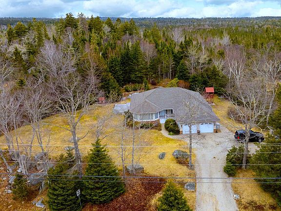 BEAUTY, OCEAN VIEWS AND SERENITY: Ocean views, meticulously maintained, light filled, custom, 3 bedroom, 2 bath home, nestled on 1+ acres of landscaped privacy, has an attached double garage, and detached single car garage set up as a workshop. Ideal one level living with full unfinished basement. Beautifully landscaped backyard incorporates the natural beauty of granite rock outcrops, assorted flowering shrubs and perennials which blend into a woods boundary to create a serene oasis. Includes a charming child's playhouse and jungle gym play-set. There is a formal living room/dining room, open concept kitchen / breakfast / family room for couples or families to gather, a large deck for entertaining and to enjoy morning coffee or watch sunsets over the ocean. The spacious primary suite includes ensuite and walk in closet. This quality built home is in the friendly community of East River Point, within the Chester Golf course membership area, close to East River Beach and the Rails to Trails for hiking and cycling and East River Marina for safe storage of one's boat. The Aspotogan Peninsula offers several other beautiful saltwater beaches and great hiking trails. Located 10 minutes from Chester and Hubbards amenities and 40 minutes from Halifax.