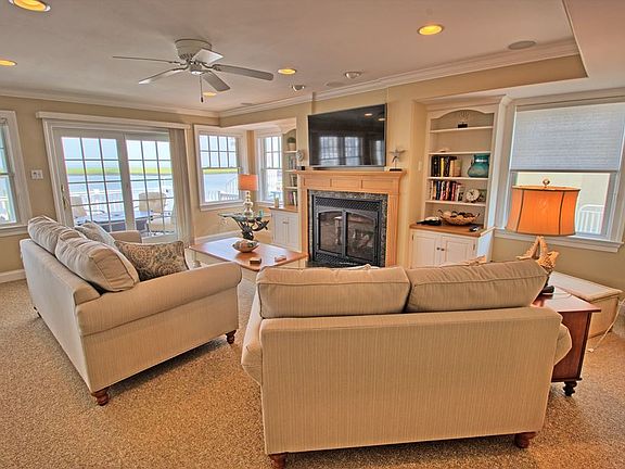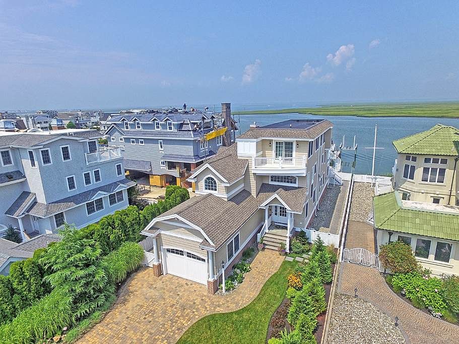 This extraordinary bay front setting offers a unique combination of wide water and sunset views, unbelievable beach proximity from a bayfront home, and a newly decorated interior. The homes presence greats you immediately upon pulling into the extra deep, pavered driveway, as the landscaping was tastefully upgraded earlier this year. Across the street is the bird sanctuary, creating a private setting with beautiful landscaping looking every direction. The beautiful ambiance is continued up the blue stone, masonry steps and into a dramatic two story foyer. The first floor features three bedrooms, all with en suite baths, a powder room, and a bayside family room that spans the width of the home. The family room offers a wet bar with refrigerated drawers, a fireplace, and multiple slider access out to a covered porch with a hot tub and a fire pit. A step down from there is a dock that leads out to a fixed pier over the water, perfect for morning coffee or watching one of the best sunsets 7 Mile Island has to offer. The dock also offers access to two boats slips, one with a boat lift. The views are even better from the second floor great room, which features a vaulted family room with another fireplace, a beautiful kitchen with high end appliances and a large center island, and a bay side dining area. Rounding out the second floor are two more bedrooms, both with en-suite baths and a powder room for the entertaining space. A private staircase leads up to the third floor master suite. The bay views from the bedroom and adjacent deck are breathtaking. A third fireplace, a walk in closet and grand master bath make this suite the perfect place to retire. Down the hall is an office with beautiful views of the bird sanctuary and a peak of the ocean (the office could be used as a 7th bedroom). Other amenities include a four stop elevator, a large garage, a security system, 3 fireplaces, plantation shutters, darkening shades in all bedrooms, and a retractable awning on the first floor deck. If you are in search of a bayfront property with one of the best views available on the island and situated just a 2 block walk to the best beach on the island, make sure to see this extraordinary property.