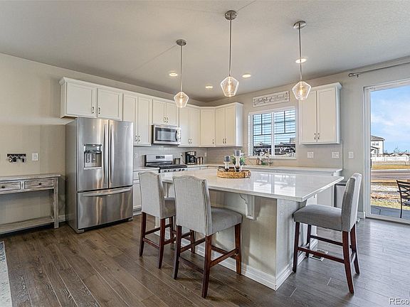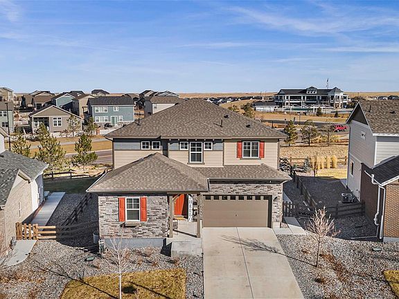 INCREDIBLE value for a larger home! Nestled in esteemed Southshore - one of the most vibrant and activity-oriented communities, this captivating home epitomizes modern luxury and spacious living. This sprawling home with NO REAR NEIGHBORS boasts a stylish exterior that blends with the picturesque surroundings of this stunning community. The main floor unfolds with meticulous attention to detail, featuring an expansive living area adorned with large windows that flood the space with natural light and offer panoramic views. The open-concept layout seamlessly connects the living room, dining area, and a gourmet kitchen equipped with state-of-the-art appliances and sleek quartz countertops. This home comprises six generously sized bedrooms, each designed to provide tranquility and relaxation. The primary suite is a sanctuary of its own, boasting views and a luxurious five piece bathroom and a sizable walk-in closet. Four additional well-appointed bedrooms offer versatility and comfort, perfect for accommodating guests or creating personalized spaces. With five exquisitely designed bathrooms throughout the residence, convenience meets sophistication. These bathrooms feature modern fixtures and luxurious finishes, catering to both practical needs and aesthetic desires. Descending to the fully finished basement WITH a private entry - ideal as a next gen suite or added entertaining. This lower level presents an inviting ambiance, featuring a living room, game room, bedroom, full bath and a kitchenette ideal for hosting gatherings and creating lasting memories with family and friends. Step outside to an expansive backyard retreat, complete with a large patio area perfect for al fresco dining, and ample space for outdoor activities or relaxation. Most importantly, fall in love with the Southshore life and convenience - activities, schools, trails, pools, rec centers, parks, playgrounds and the Aurora Resevoir - are all at your fingertips!