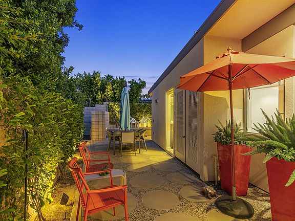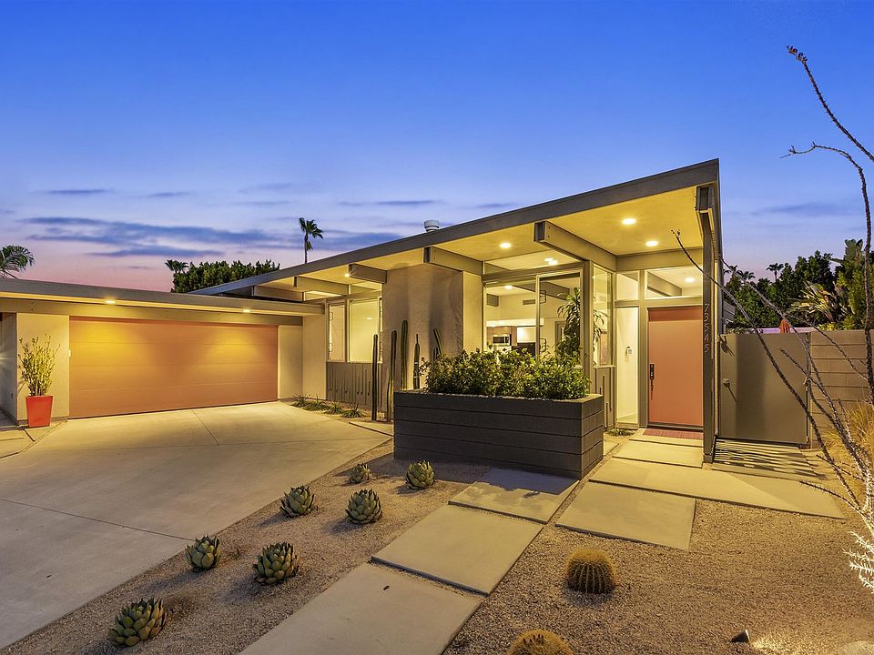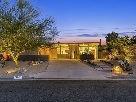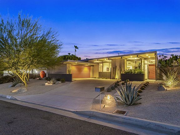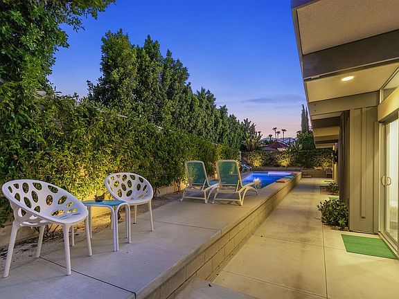 UNIQUE OPPORTUNITY to own this MID- CENTURY MODERN featured in the Palm Desert Modernism Week Tour. Designed by award-winning architect Lance O'Donnell AIA in the much-coveted south Palm Desert neighborhood minutes from El Paseo. This signature GREEN home offers a delightful Master suite with access to the pool/spa, a walk-in closet and sumptuous Ensuite bathroom. Additional guest bedrooms and bathroom round out a rarely offered home with this level of finish. The thoughtfully designed and highly upgraded state of the art chef's kitchen is anchored with the impressive Advantium Speed Cook top and Steam Oven, solar tube, modern cabinetry, quartz counters, and glass backsplash which opens to both the north-facing living room with vaulted ceilings, mountain views, fireplace and south-facing dining and family room; Dramatic exposed beams as well as clerestory windows and sliding glass doors open to the lap pool and in-ground spa offering a relaxed lifestyle for today's discerning buyer. Fabulous south- facing entertainer's dream patio is designed to perfectly flank the lap pool/ spa while enjoying complete privacy and mountain views. Quintessential Desert lifestyle without compromise.