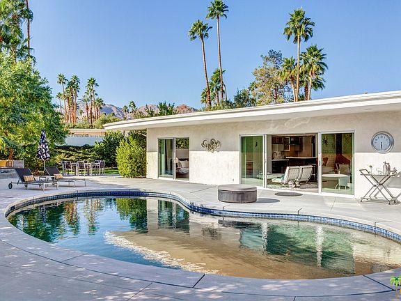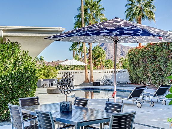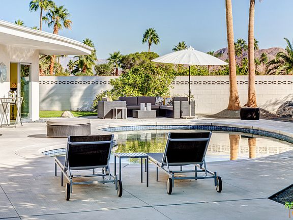 Super stylish MID-CENTURY MODERN home with ultra-private south-facing backyard that delivers views of the surrounding mountains! This one is a winner! Located on a quiet dead-end street in South Palm Desert, this beautifully renovated home offers an open floor plan, great separation of bedrooms (Master Suite on one end and the guest bedrooms on the other), easy access to the outside, and modern design appointments inside and out! Enter through the turquoise set of front doors into a light and bright living room that offers mountain views, concrete flooring, gas fireplace, modern kitchen, and immediate views and easy access to the backyard. Master Suite offers direct access to the outside as does the well-appointed bath. You will love the abundance of built-in cabinets, too! On the other side of the house are two additional bedrooms - one that opens to the pool and the other that offers views to the north - as well as a full bathroom that offers views to the east! Stunning!