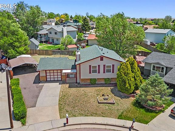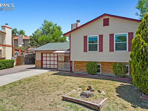 Nestled in a quiet cul-de-sac, this home is the perfect place to make your home! It features ample covered parking with an attached garage and a carport that accommodates up to two vehicles. Conveniently located close to Ft. Carson, Schriever, and Peterson Air Force Bases, this home is also near shopping, entertainment, and provides easy access to I-25 and Powers. As you enter, you are greeted by a spacious entryway with access to the garage, backyard, and both levels of the home. The upper level features an updated kitchen with newer cabinets, a stainless steel refrigerator, stove/oven, over-the-stove microwave, and dishwasher. There is plenty of cabinet and counter space, a pantry for extra storage, and room for your dining table in this eat-in style kitchen. The open concept design connects the kitchen to the bright and spacious living room, offering plenty of seating for everyone. The upper level is completed by two generously sized bedrooms and a full bath. The lower level multi purpose room will become your favorite hangout spot, perfect for enjoying a roaring fire on a cold winter night or even hosting movie nights. This level also includes two additional bedrooms, a full bath, and a laundry room. The backyard offers two sheds, garden areas, and plenty of space for everyone to run and play. See it today, this one won't last long!