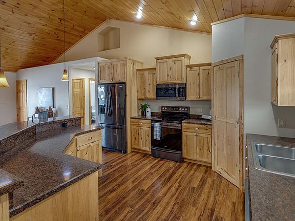 acres. Located in the city of Lakeshore and convenient to boating, fishing, golf, fine dining and premier resorts. This home offers the ease of one level living, lovely open floor plan, beautiful large primary suite with jetted tub and separate tiled shower. 2 more bedrooms with full bath between. Stone gas fireplace, two covered porches,& in-floor heat. Massive 48' x 56' Fenced garden. New water system in 2022, newer kitchen appliances, huge island & pantry. Attached garage is heated. Whether you are looking for a hobby farm or privacy, you have found it here.