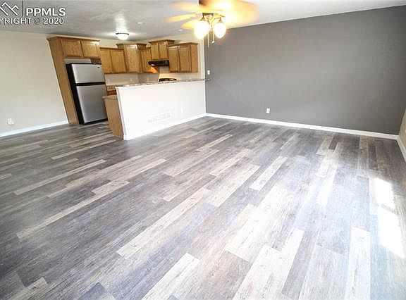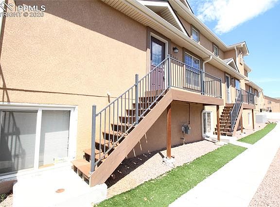 Nicely updated 2 story townhome within minutes to Ft Carson. Beautiful luxury vinyl plank flooring just installed on main level. Big open kitchen with counter bar and all appliances included. New carpet on upper level which features a very large master bedroom. Master has a walk-in closet plus attached 5pc bath with large soaking tub. Two more bedrooms upstairs as well as a full bathroom and laundry closet. Basement is totally finished and is currently set up as a non-comforming 4th bedroom. Nice 3/4 bath in basement and big closet. The basement can also be used as a recreation or movie room. The garage is oversized and has additional built in shelving. Central Air to keep you cool!