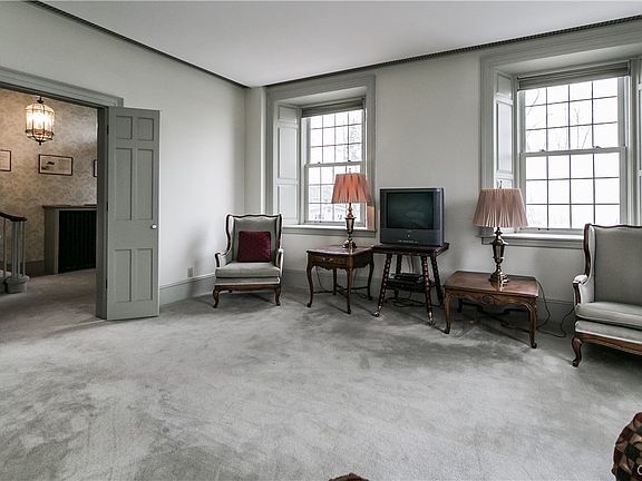 Rich in history, this home was built by a Revolutionary War Veteran, was later home to a NY Supreme Court Justice and then a prominent industrialist. The warmth of the home rises to greet you in the front foyer with a gorgeous staircase and architectural details that continue throughout. This home has all the character you'd expect, window seats, fireplaces, french doors, built-ins & detailed trim. The formal sitting room flows to liv rm, into the formal DR, & then to the updated Cherry kitchen with Corian countertops. The adjoining butler's pantry houses a second range & refrigerator and 1st fl laundry and leads to the rear mudroom & 1/2 bath. The 1st floor bedroom offers a fireplace and a bath with separate shower. The second floor offers 5 bedrms, a large office & 3 full baths. Take a glance out of the bdrm windows and note the amazing views of the 2.63 acre yard, which you will also enjoy from the sunroom or open porches. Oversized 3 stall garage. The design of this house would easily lend itself to use as a bed and breakfast. 2022-10-29