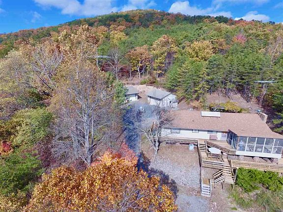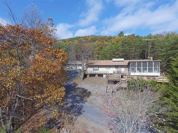 Fantastic Mountain getaway w/long frontage on Nat'l Forest, ideal for hunt camp, weekend retreat or live in privacy w/beautiful mountain views. Main house has 3 BR's, 2.5 BA, lg LR w/stone frplc surround & built-in wood-stove. Full DR & lg galley style kitchen. Great 2 level deck w/wooden hot tub, screened porch, rear patio w/outside dining & grilling area. Additionally, there is a guesthouse/club-room for the weekend guests! It has its own kitchen & full bath & attached 1 car garage. Separate 2 car garage/shop for your woodsman toys & equipment. Trails throughout the 39 acres & already set up for skeet shooting course, shooting range & hunting. Lg spring fed pond, yr round stream, over 2300 ft bordering Nat'l Forest. Property in Land Use.