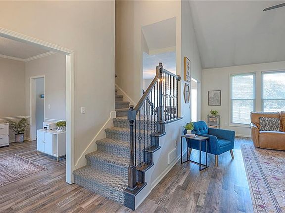 Welcome home to this gorgeous house! A spacious entry allows you to greet your guests as they arrive. Venture into the great room featuring vaulted ceilings, and a cozy fireplace. The oversized eat in dining area allows you to entertain all your friends! Cabinets galore store all the extra kitchen gadgets your heart desires. The front room allows you to work from home or display your heirloom dining table. As you accend the dual staircase to the second floor, oversized rooms await you. The master features a walk in closet and en suite with a jetted tub and separate shower. Hang out in the basement with the gang and watch movies or play video games all night long. There is pleny of storage in this home for many trips to the home decorating stores! Relax in the backyard after a long day at the office, grilling or playing catch with the family. This home is waiting for you to make it yours!
