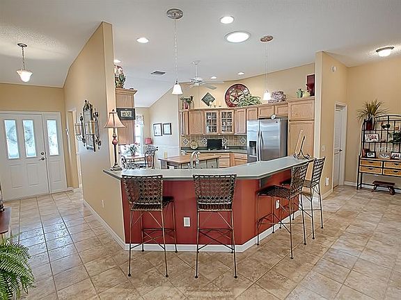 You will fall in Love with this Beautiful Designer Hibiscus Model Home in the Village of Chatham. Close to Nancy Lopez Golf Courses, Pools, Recreation Centers, Publix, Walgreens, Restaurants, Gas, Medical Facilities and all just a few minutes by Golf Cart! If that isn't enough this home is TURN KEY and the BOND IS PAID! The Roof was replaced Dec 2021, HVAC 2016! Large Kitchen with Stainless Appliances, Gas Range, Garbage Disposal, Corian Countertops and Breakfast bar with stools. Spacious Master Bedroom with His/Her's Closets , on suite bathroom with double vanities and a beautiful tiled shower. Guest bedroom, bath and office/den are separated from Master to give your guests plenty of private space when they come to visit. Spend your days in the Large Lanai, complete with TV or reading nook and dining area along with right Outside the lanai you will find a covered BBQ area for all your cookouts. Front porch area has been expanded and is furnished to give you a place out front to gather with friends and neighbors. This home is filled with so much warmth you will feel at home the moment you walk inside the door. Schedule a showing to see this beautiful home before it's too late!