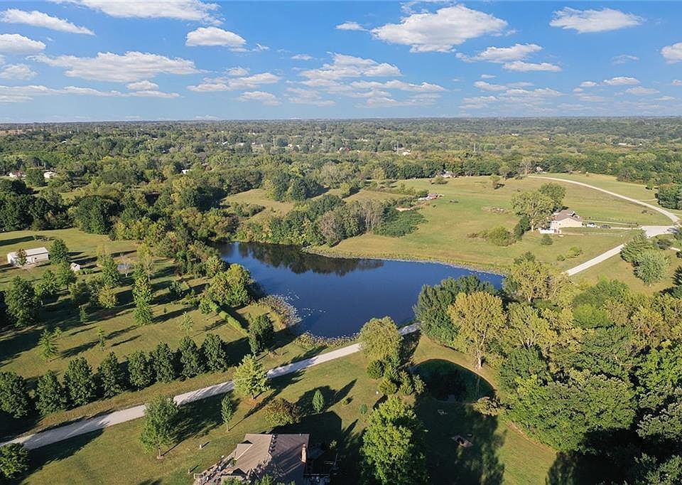 Tucked away at the end of a quiet cul-de-sac and surrounded by over 5 acres of lush, timbered land, this tranquil home offers peaceful and comfortable living. The open floor plan flows easily for entertaining and everyday relaxation, featuring a spacious kitchen with a large island and plenty of cabinetry. From the kitchen, step onto the expansive deck to enjoy beautiful views of the wooded lot. The main floor includes a convenient laundry room with a half bath just off the kitchen. The oversized master bedroom has soundproof insulated walls, a luxurious walk-in bathroom, and two generous closets. The bright basement hosts bedrooms two and three, with a walk-out to a patio showcasing the scenic treed lot. Complete with two cozy fireplaces and located in the highly sought-after Kearney school district, this home is a true gem.
