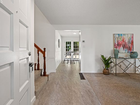 Perfectly situated in a well-established neighborhood between downtown Beaverton and Washington Square, this home exudes a warm and welcoming feel throughout. The generous living room is both elegant and comfortable with a large bay window and lovely brick fireplace. Formal dining room offers ideal indoor-outdoor flow thanks to French doors that lead out to the large backyard. Remodeled eat-in kitchen sparkles with beautiful quartz countertops, pull-out shelves, pantry, soft-close drawers, plus more French doors out to the oversized patio. Grand primary suite upstairs wows with private en suite bathroom. Never worry about an overflowing closet again thanks to an unbelievable walk-in closet with ample shelving, and even a shoe wall. Two additional bedrooms upstairs, plus another full bathroom. Dreamy abundance of space to unwind on the lower level with a spacious family room and half bathroom. Expansive private backyard with an abundant apple tree surrounded by gorgeous trees offers endless possibilities for play and relaxation. Additional updates include: Milgard windows, new roof, and luxury vinyl plank flooring. Ideally situated near Ridgecrest Park, schools, great restaurants, shops, grocery stores, public transportation, the Beaverton Farmers Market, and more!