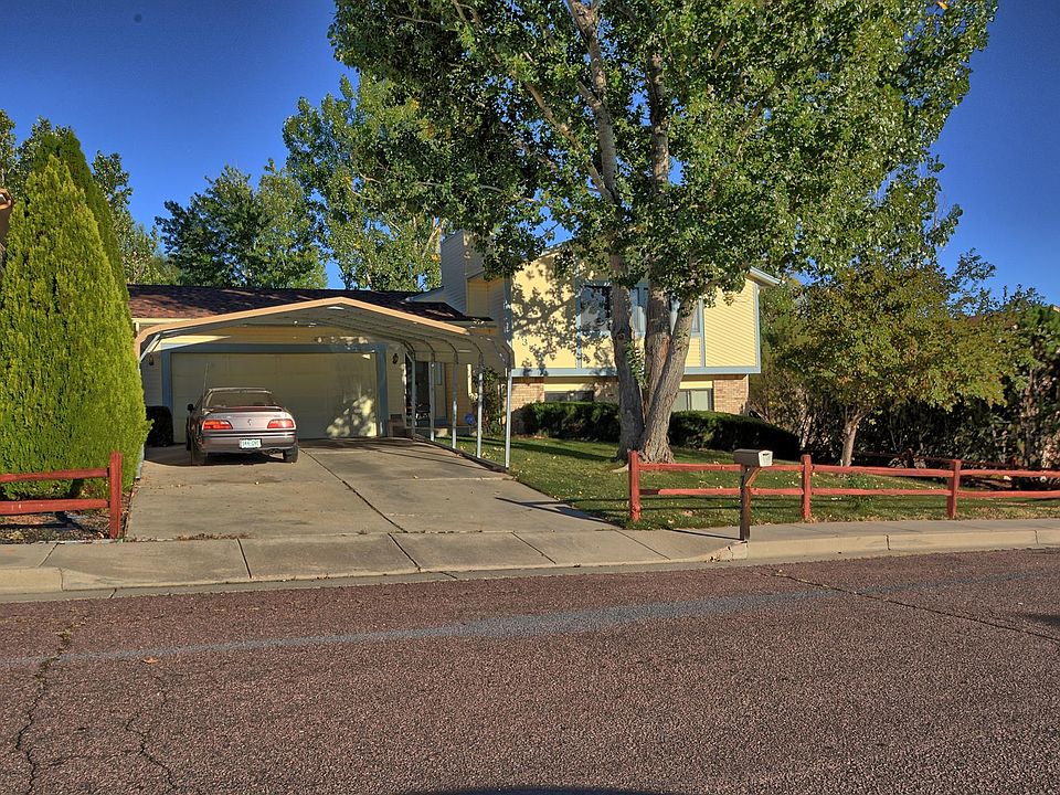The neighborhood is quiet and friendly, full of dog walkers. School park is within walking distance and shopping center is only a mile and a half away. A quick 15min drive can get you to Evans Army Hospital on Fort Carson. Also near Powers and 1-25 for easy access to Northern COS routes. The split floor home offers tall ceilings upstairs and a wide open layout with the kitchen sink facing a beautiful outside view of the trees and mountains. The open concept offers the most of your space with nothing wasted. The rooms are perfect for 2 twins, 1 full or queen size bed and dressers, with the master fitting a king size bedroom set without any issues. Freshly painted. Ready to move in, offering a full carpet cleaning and wipe down service at closing. New 50gal hotwater heater, less than 2 year old carpet and new vinyl flooring upstairs. Bathroom floors will also be redone and new. Great back porch area and beautiful space with climbing and shade trees.