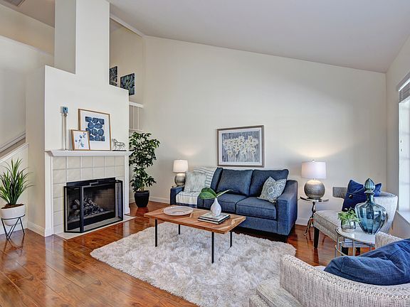 Open Sat-Sun 1-4. Delightful, bright, fully-updated townhome in the attractive Gables community near Stoneridge Mall. Great schools! Includes approx. $50,000 in improvements per seller. Private gated patio, two story and vaulted ceilings, large windows and transoms, living room with fireplace, dining area, impressively remodeled fully-equipped kitchen with quartz countertops and full backsplashes, large loft with vaulted ceiling and built-in window bench, inside laundry, remodeled baths. Finished two-car garage with epoxy floors. New furnace and A/C. Laundry hookups in laundry closet and also in garage. Unit faces attractive greenbelt near community pool. Convenient to 680 & 580 freeways, BART stations.