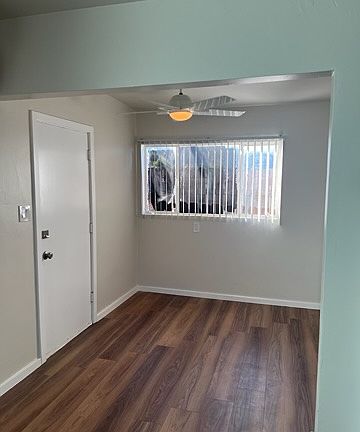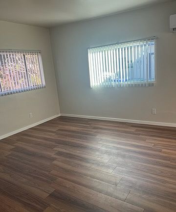 Apartment is located on the corner of San Pablo and Fred Waring. Apartment is in a 4 apartment complex. Freshely repainted, new vinyl wood plank flooring, new appliances, new kitchen countertop with new sink and drop down faucet. Unit has a mini split for AC. Unit also has a private back patio. College of the Desert, Palm Desert Aquatic Center and Palm Desert Civic all in walking distance of the complex. Owner takes care of the gas, water and trash. Tenants pay for electricity and cable. This is a one year minimum lease. No pets are allowed without owners approval