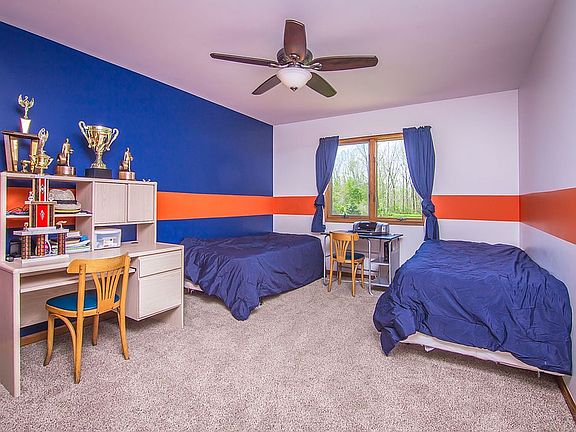 Gorgeous custom ranch located just outside of downtown Richmond. Prestigious living on 6 Acres! Property features a large pond, HUGE detached garage for 6+ cars -- Radiant heat, electricity, and a workshop. 3-Car attached garage with drive through access into the large basement. Basement includes a walkout access to your back yard. 4 beds, 3 full baths. Master bedroom features cathedral ceilings, a walk-in closet, full master bath, and a Jacuzzi. Master overlooks the pond surrounded with wildlife and well groomed property. Sun room offers an incredible view of the pond. Spacious kitchen with all appliances included. Open floor plan with cathedral ceilings. Warm up next to the beautiful brick fireplace in the big living room. Large first floor laundry room next to 3 spacious bedrooms. Newer sump pump and water softener. Richmond Schools.