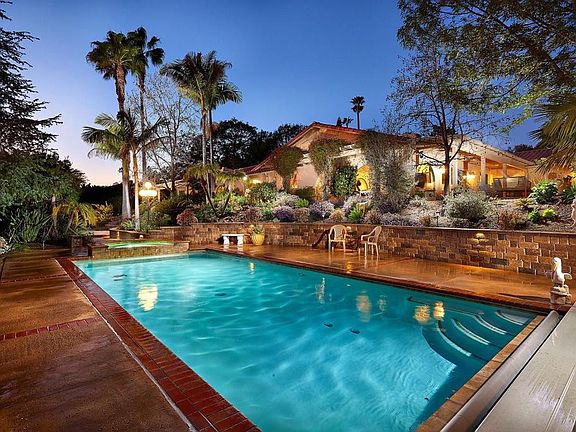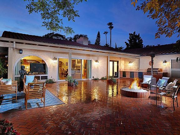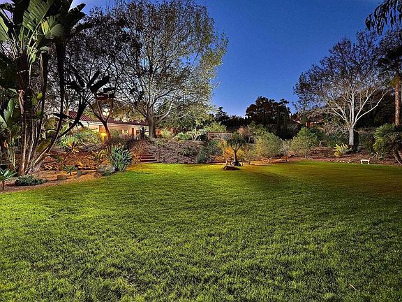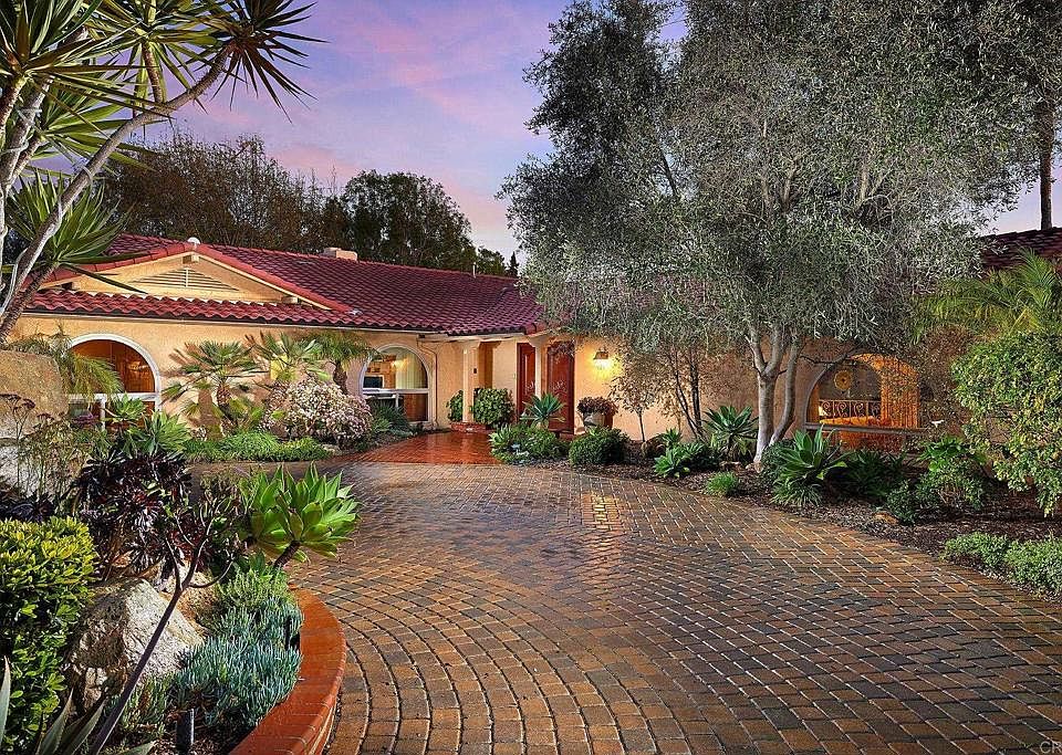 Discover your dream home in the heart of La Costa. This beautiful single-story custom-built home spans over 4300 square feet and sits on over an acre of beautiful, mature water-tolerant landscaping, providing a peaceful and serene oasis. Boasting 3 bedrooms, a large bonus room and 4 baths, this home offers an abundance of living space and a highly desirable open concept design. The large living room, family room and kitchen are full of natural light, thanks to large windows that offer breathtaking views of the surrounding landscaped yard. You'll fall in love with the Teak cabinetry, wet bar with glass doors in the upper cabinets, and cast cement fireplaces that add a touch of elegance to this already beautiful home. The high-beamed ceilings add to the grandeur of the space, creating a warm and inviting atmosphere that is perfect for both relaxing and entertaining guests. The kitchen has a center island cooktop, granite counters, Teak cabinetry to match, re-built Sub-zero refrigerator and is open to the family room with views to the patio area, pool, and mature landscaping. The large bedrooms provide ample space for family and friends. The master suite is located in its own private wing with a stone fireplace, and windows which have beautiful views of the lush landscape. The master bath is complete with a walk-in shower, stand-alone bathtub, dual vanity sinks, a walk-in closet, and an abundance of cabinets for linens. The expansive laundry room has more cabinets for storage and a utility sink which is a welcomed convenience for busy homeowners. Access the patio & BBQ area from the laundry room as well to help with cleaning and wet bathing suits from the pool. Step outside and you'll be greeted by the sparkling pool and spa, surrounded by a large patio deck with a firepit, perfect for cozy nights under the stars. The built-in BBQ is perfect for hosting summer parties, and the large grassy area is perfect for outdoor games or simply lounging in the sun. The property is surrounded by mature tall trees to offer privacy, numerous fruit trees, flowering shrubs, and sitting areas in many locations, providing the perfect place to unwind and enjoy the beautiful surroundings. The new roof, windows, heating system in master and driveway add to the value of this already impressive home. The large 3-car garage has more storage and space to work or store those extra toys if needed. This home is situated on a gated flag lot, providing the ultimate in privacy and seclusion. The property is fully fenced with security gates at the entrance, full landscape lighting surrounding the property as well as security lights in strategic areas. Don't miss your chance to make this beautiful La Costa home your own. Close to La Costa Resort & Spa, golf, shops, restaurants, award winning schools and so much more…