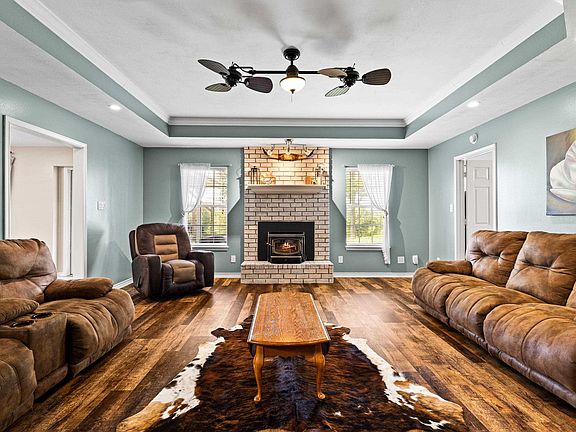 Great news! Seller is now offering $10,000 toward closing costs or a rate buy-down—don’t miss out! Tucked behind a gated entrance in Harmony ISD, this beautifully updated 4-bedroom, 3-bath home sits on 18.32 acres and offers the perfect mix of privacy, comfort, and country charm. You’ll fall in love with the hilltop views, spring-fed pond, and open pasture the moment you arrive. Enjoy morning coffee or quiet evenings under the pergola on the covered back patio, overlooking some of the best scenery East Texas has to offer. Inside, the home features a spacious, master-split layout with a cozy wood-burning fireplace and a warm, welcoming feel. Several rooms include recently installed vinyl plank flooring, while others showcase travertine tile and fresh paint throughout. The kitchen is stylish and functional with granite countertops, stainless appliances, freshly painted cabinetry, and a breakfast bar that flows into the large dining area. Both ensuite bathrooms and the laundry room have upgraded quartz countertops, and the guest bath includes updated cabinetry. The HVAC unit (2022) and water heater (2024) have been replaced to offer added peace of mind. Outside, the 30x30 insulated shop includes two bay doors, a lean-to, concrete floors, and a separate electric meter. There’s also an attached 2-car carport with a storage room, a fenced backyard, and a front pasture (approx. 4.5 acres) already fenced and ready. The RV carport has a 50-amp hookup and water access via Pritchett Water. A private well supplies the shop, sprinkler system, and farm, and the 13-acre ag exemption helps reduce taxes. Whether you're starting a small farm or just want room to breathe, this one has everything you need. Schedule your private showing today and come see what country living is all about!