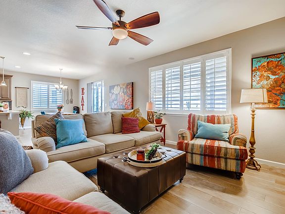 Beautiful Cobblestone Ranch home next to open space offering 3 bedrooms, 3 bathrooms, a 2-car garage and a finished basement that's great for entertaining! Expansive upgraded basement with full custom wet bar, ceiling-mounted theatre surround sound, as well as an oversized bedroom and full bathroom. Lightly lived-in home is ready for you to move in, featuring a fully-fenced and landscaped backyard with a huge covered patio including large outdoor roller shades and gas hookup for your grill. Step inside to a beautiful open floorplan featuring engineered hardwood floors, plantation shutters, quartz countertops, and stainless steel appliances. Great for everyday living and entertaining, with main floor living area featuring fully installed audio-video capabilities. The master bedroom is an amazing retreat with a full ensuite bathroom with separate shower and tub, as well as a large walk-in closet. Laundry is conveniently located on the main level. Located in the Douglas County School District, Cobblestone Ranch amenities include great trails, a community pool, clubhouse and tennis courts, and easy access to both Parker, Castle Rock, and I-25.