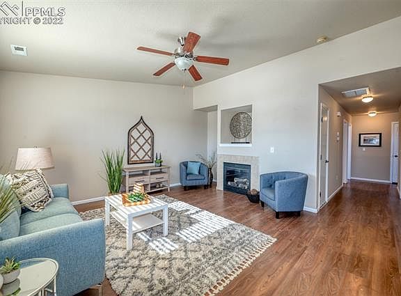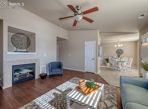 Well-loved built-on-slab Aspen View Shavano ranch plan home on a quiet cul-de-sac. Living room separate from dining room/kitchen combo, 3 bedrooms, 2 full bathrooms, main level washer and dryer, master bedroom with master bath, professionally selected interiors and exteriors, stone accents. Central Air Conditioning and gas fireplace! This cozy home on a private lot with a one-of-a-kind open floor plan will not last!! Convenient to Ft Carson, schools, shopping, and more.