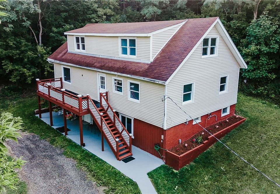 THIS IS IT! - HAVE A GROWING FAMILY?...NEED A GROUND FLOOR IN-LAW SUITE?...THINKING ABOUT AN AIRBNB INVESTMENT? This 2,300+ sq.ft. 4 BED/2.5 BATH Cape Cod with beautiful porch nestled on over half acre of wooded privacy is just the answer you've been looking for! Located off of picturesque Fish Hatchery Rd. in the desirable Pleasant Valley area minutes to KEUKA LAKE and HAMMONDSPORT VILLAGE! Newer state of the art 2011 aerobic septic system and roof with vinyl siding is maintenance free living! The huge lower level with a 2nd kitchen is a blank canvas for additional ground level living space easily converted into in-law suite if needed. This wonderful home has so much potential and much to offer at an affordable price! NO DELAYED SHOWINGS OR NEGOTIATIONS...EARLY BIRD GETS THE WORM!