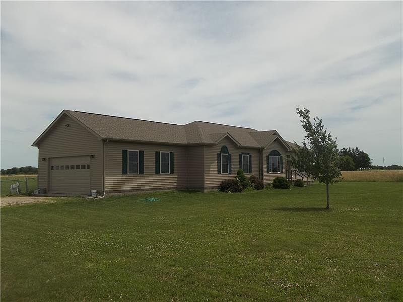 Rare offering of newer ranch home on 6+ acre lot. Open living room and dining area, attached garage, large master suite with walk-in tiled shower, and fenced yard in rear for pets. Less than 6 miles from I-71 for easy commute to Columbus. Perfect place to enjoy the privacy of the country on large lot!