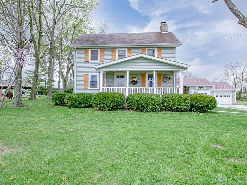 Farmhouse Charmer! This lovely 3 bedroom 1 bath home nestled on 1 acre in the countryside outside of Camden. You will love all this property has to offer like the 26x24' barn and a two car garage w/ work shop with a covered patio. A welcoming front porch is the perfect spot to relax and look over the miles of farmland. Inside the living room has a new pellet stove, which is a great alternative heat source for the winter. A bedroom is situated off the living room. Upstairs are 2 bedrooms, the larger one has 2 closets and both have the original wood flooring. The eat-in kitchen is spacious and has a huge walk in pantry. The laundry room has oak floors and plenty of room for multi purposes. The yard also includes a large garden bed and a fenced in area around the barn. Hot water heater and sump pump new in 2022. Come live your country dreams!