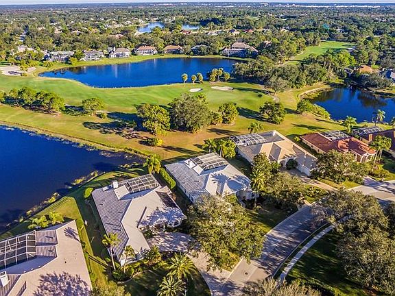 This Dan Najjar custom designed 4 bedroom home has a fabulous Lake and Golf Course view. 2 master bedroom suites, Wheel chair Accessible. Granite kitchen and Silestone bathrooms. Volume ceilings throughout with detailed finishes. PERMA-SEAL ROOF completed 2014 $15,000. NEW TRANE A/C 2016 $6,362. Oversized side entry garage with Golf Cart Door for your private Golf Cart. Solar Panels to Heat Pool, Brick pavers at the front and Pool/ Spa area complete this superb home. University Park offers 27 holes of championship Golf, 11 Har-Tru lighted Tennis courts, state of the art Fitness Center all within minutes of the New UTC University Town Center Mall with fine Shops and Restaurants.