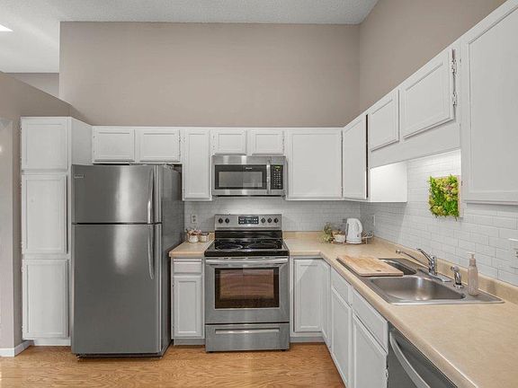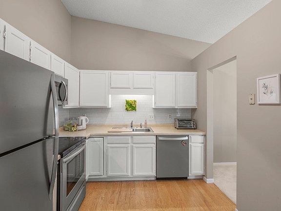 Beautiful 2 bed, 2 bath skylit condo with vaulted ceilings in highly sought-after West Bloomington! This tastefully updated unit boasts modern finishes, vaulted ceilings, and ample natural light flowing through skylights. The updated kitchen features new stainless appliances, new backsplash, and white cabinetry. A dining space, inviting living room and balcony off the back, create a perfect layout for entertaining. This condo features two very spacious bedrooms, one full bath, and a private primary 3/4 bath with double sink and walk-in shower. In-unit laundry, a new furnace and 2 community pools are a great bonus! Conveniently located just minutes from tons of shopping, dining, and quick access to Hwy 169. Enjoy Dred Scott Playfields, Ferry Trail Bridge, Hyland Lake Park Reserve, minutes from your door. You’ll love the privacy and comfort of this charming condo. Don't miss your chance to make it yours – schedule a showing today! Would make a great mid-term rental investment property.